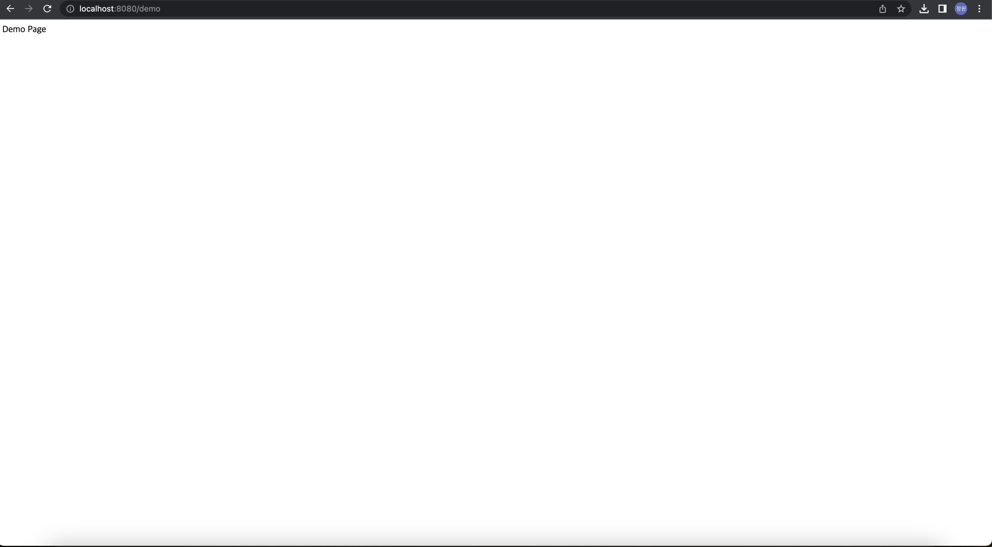 그리고 다시 빌드 후 런 동작을 한뒤 http://localhost:8080/demo를 접속합니다. 그러면 아래와 같은 페이지가 나타납니다.
