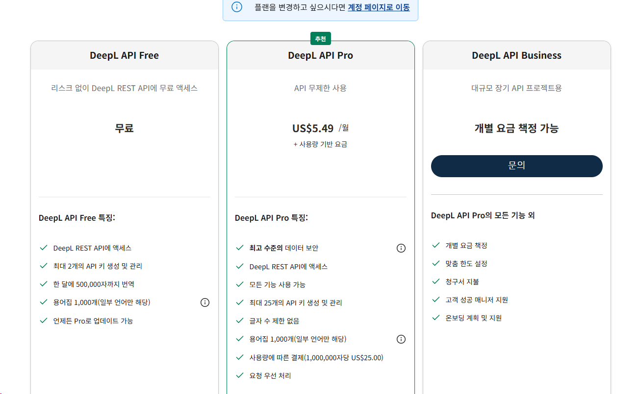 먼저, DeepL에서 회원가입을 진행하시고, DeepL API키를 발급 받습니다.