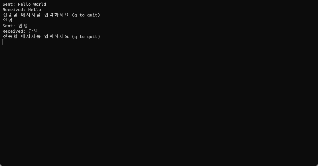 Console.WriteLine("전송할 메시지를 입력하세요 (q to quit)");
